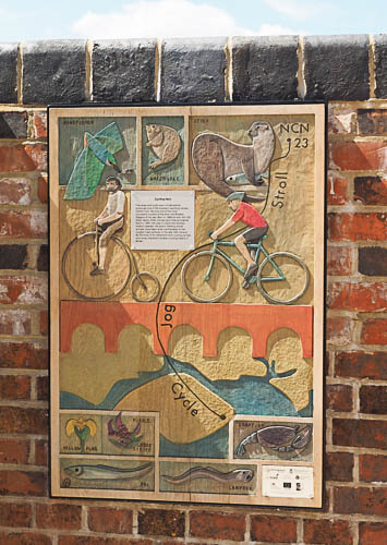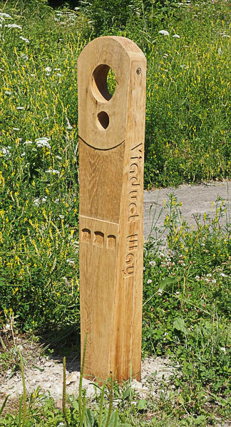 Becky had written “The dandelions are floating across the viaduct, I try to catch them but I miss every time”. Look out for the benches in alcoves on the south wall of the viaduct which quote these lines.