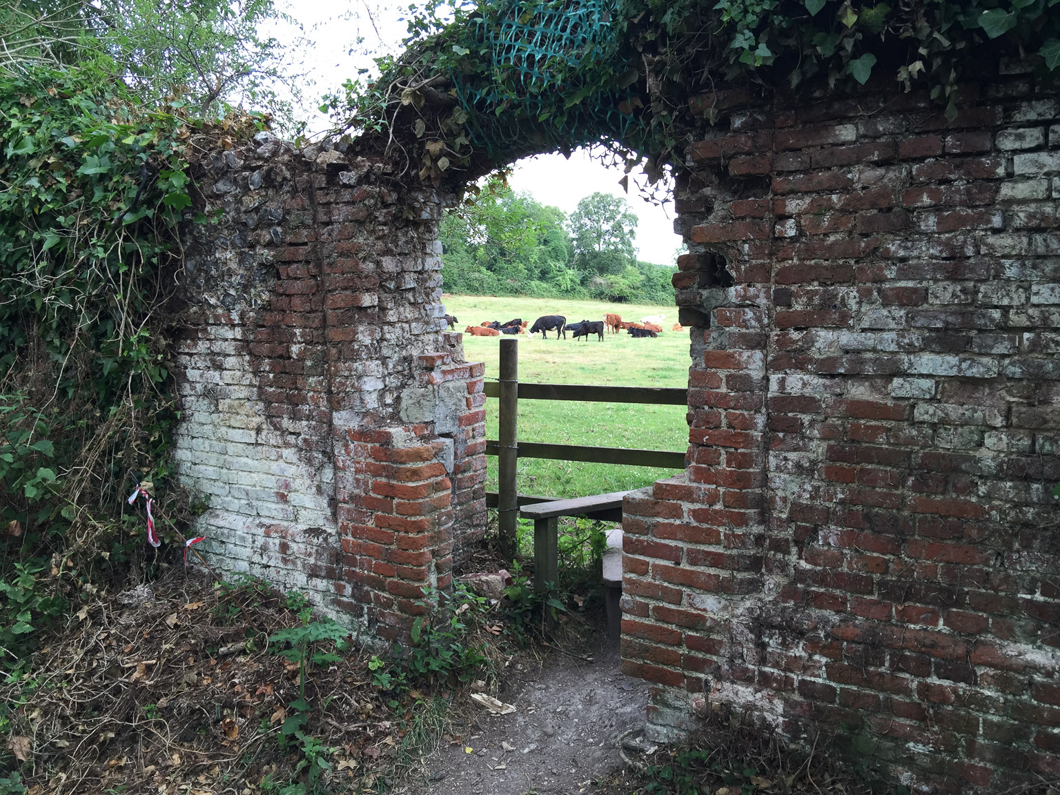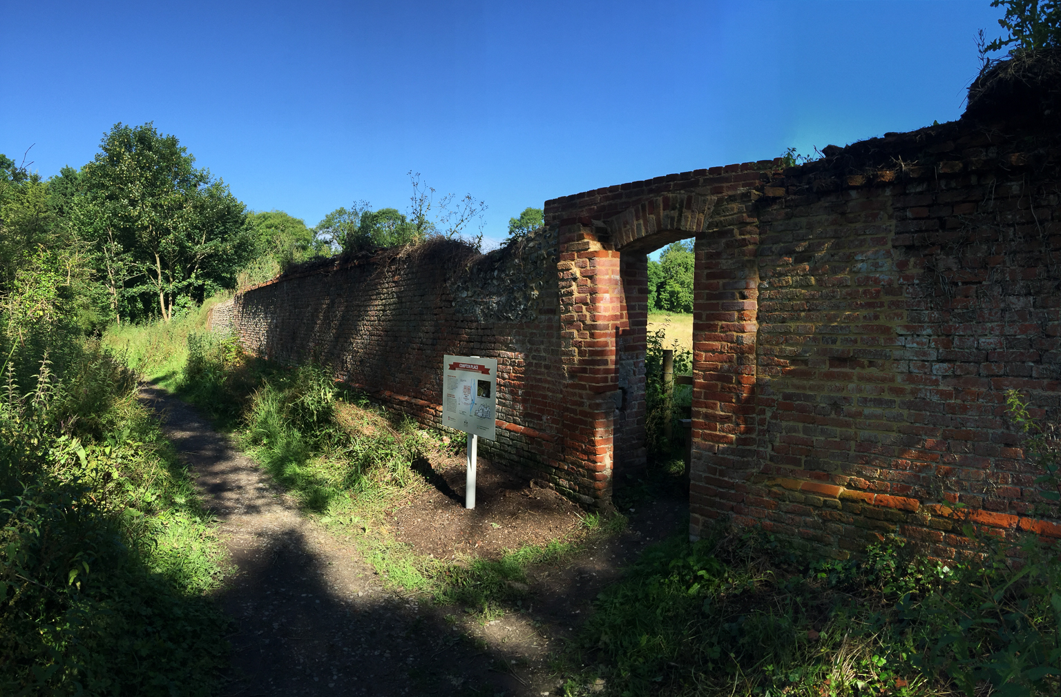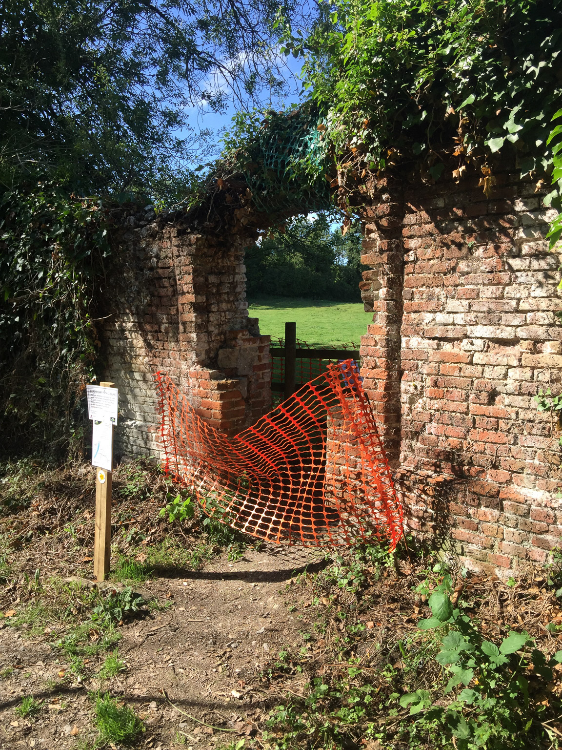 In 1713, the lease of land by Sir Henry Worsley to John Goldfinch includes “ … lands where the ancient manor house, outhouses and gardens lately stood”. The only remaining evidence is a fragment of the 16th century brick and flint wall, and the narrow Tudor arched gateway.
