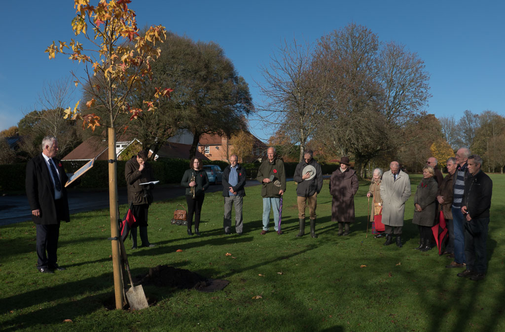 On 11 November 2018, after the Remembrance Sunday Service at All Saints, Compton, and the services at the Wayside Cross and the stone memorial on Shawford Down, a good number of villagers made their way to the Memorial Playing Field.