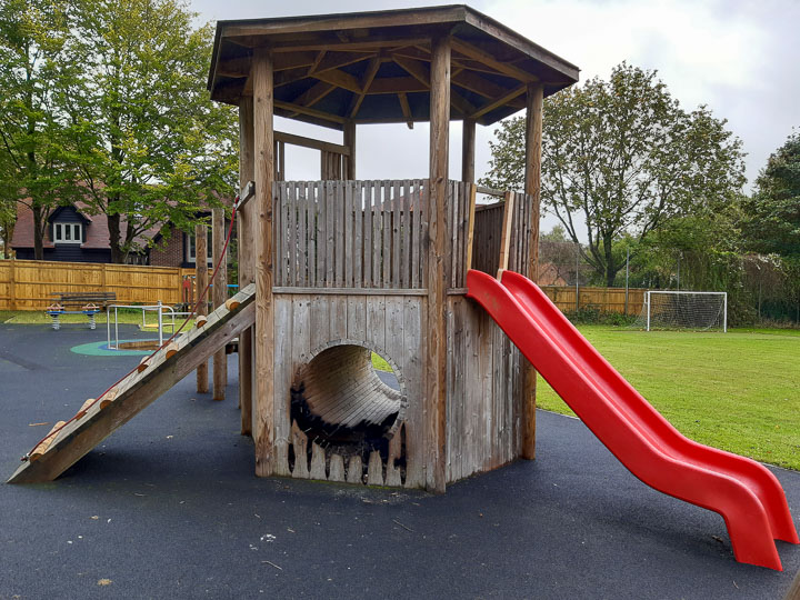 On Sunday morning 29 September 2019, someone set fire to the multi-play unit at the QE II Field play area in Compton Street.