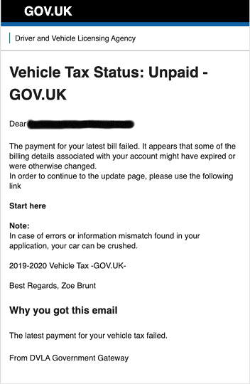 Or they send you an email or text that looks as though it came from a well known business or a government department such as the DVLA or HMRC.